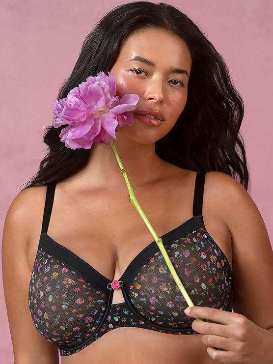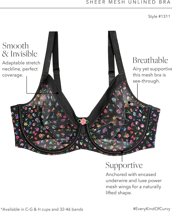 The Curvy Couture Women’s Sheer Mesh Full-Coverage Underwire Bra is designed to support curves without sacrificing breathability or style.