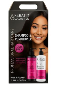 Meet the Keratin & Coconut Oil Shampoo and Conditioner Duo, your professional hair care solution in a convenient 2 x 1000 ml set. Infused with nourishing keratin and hydrating coconut oil, this duo rebuilds hair from the inside out, smoothing frizz, enhancing shine, and protecting against daily damage. Whether your hair is straight, wavy, or curly, it delivers the soft, strong, and manageable hair you’ve been dreaming of.